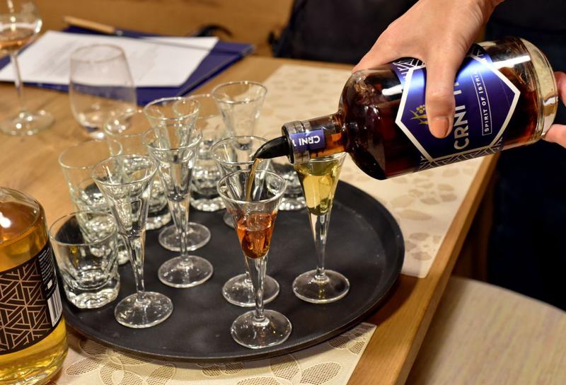 Druženje je započelo s rakijama i likerima Destilerije Krulčić iz Lindara kraj Pazina. Vlasnik destilerije Renato Krulčić četvrta je generacija koja se bavi proizvodnjom destilata, a navršava se 104 godine otkako je dozvolu dobio njegov pradjed Giovanni. Baza destilata je grappa (komovica), a predstavljaju, kaže Krulčić, tradicionalnu Istru na suvremen način. Kušale su se rakije: Travarica koja se radi po staroj recepturi, a nastala je kao tinktura za smirenje koju su primjenjivali benediktinci i Crni trn, istarska divlja šljiva čiji se plodovi beru kad počne mraz, kad trpkost prijeđe u slatkoću. Ljubiteljima likera posebno su se svidjeli njihovi Amaro di oliva na bazi ploda masline i Terranino.
