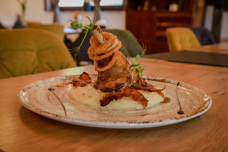 a uz Graševinu Sur lie Janjeću koljenicu s pireom od batata.