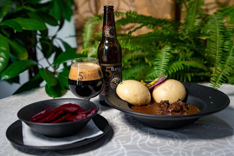 Uz craft pivo 5TH ELEMENT IIPA (Imperial India Pale Ale) u Greenbergu vam predlažu Gulaš od divljači s njokima; Marinirana pileća krilca u Queen,