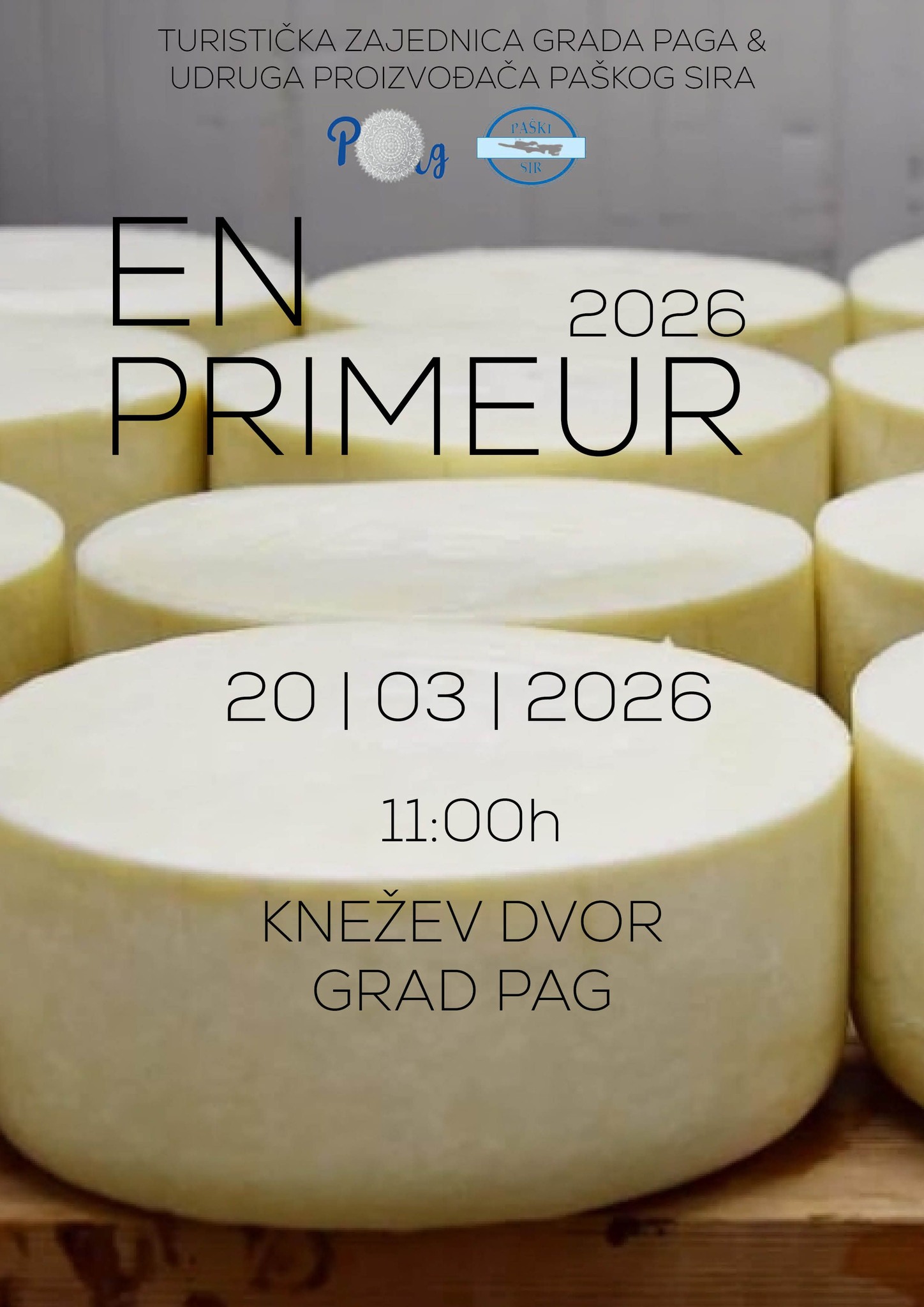 Nakon što je prije tri godine pokrenut događaj posvećen premijernom kušanju mladog paškog sira, ove će se godine održati njegovo treće izdanje. U suradnji Turističke zajednice Grada Paga i Udruge proizvođača paškog sira otoka Paga, u petak, 20. ožujka u 11 sati, organizira se manifestacija EN PRIMEUR 3.0, kojom će svečano biti predstavljena nova sezona mladog paškog sira.