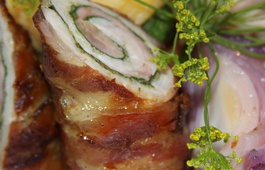 Teleći file očistimo i lagano istučemo batom za meso. Napunimo ga kremom od usitnjenog kulena i svježim špinatom, zatim zamotamo u carsko meso i pečemo na laganoj vatri oko 10 minuta.